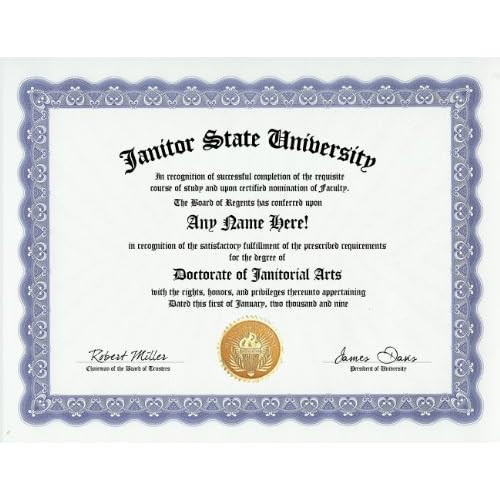 His service to the nation would have to be pretty good to get all that. Who knows? His career could take off in a number of directions, depending on all the honorary degrees he gets. If he's lucky, he might get an honorary Certificate in Health and Hygiene Studies to join Mistie at the uni. Do you have a picture of that? |
