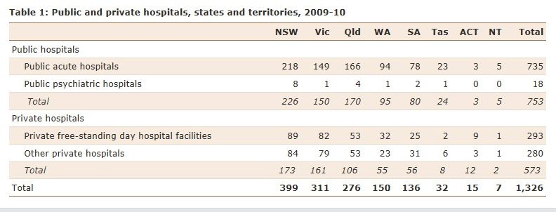 Nice use of data, Swagman. You’ve proven there are quite a few private hospitals. And yes, if they weren’t there I imagine they would put stress on the public hospital system.