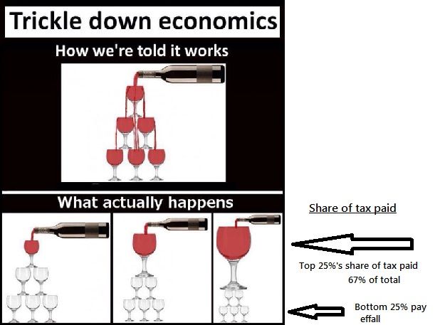 Seriously, the Debt levy should have started at $80K (for singles) My message about tax is simply that the main tax burden is on a minority of people which has to be acknowledged. The only sustainable way to fund the bloating budget expenditure is to increase taxes (both income and GST) and start charging token fees for services. The increases should be small but across the board and all demographics but brought in small increments over time so as to have minimal effect on demand for G & S. Tax increase would have to accompany a significant interest rate cut. I don't disagree that the ('rich') should be able to afford a tax increase but dropping it all on them is wrong. Token fees like the co-payment could have been easier to sell when the Downtrodden in their petty jealousies actually see that the rich are copping a whallop. That is what Hockey & Co have managed badly :( With tax increases on rich reform on IR removing penalty rates etc would be required as well. Everyone would have to give way |