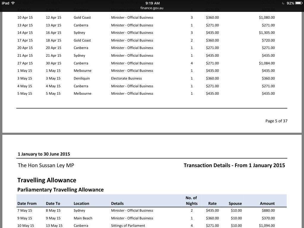 There was Don Randall, took a tax payer funded trip to Qld to buy an investment property. He had to pay the money back, hope Ley will have to as well.