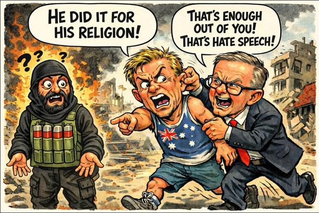 at the same time the new legislation will allow Islamic hate preachers to hate on Jews if they were quoting an Islamic text that said - kill the Jews. It was a get out of jail free card for them. |