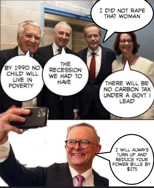 Like Trump. He recognised the mindset of the voters and tapped into that. What do people want. They want a leader who is not an intellectual, who knows how to hold that smiling winning frame, who understands people are basically scared and tired and don't want to think. There is a good saying politicians need to remember. Milk for babies Meat for men. Dutton got associated with Trump. But Dutton is nothing like Trump He is probably more like Keating. Ideas like nuclear power are meat. Voters want milk. They are babies who are hungry and feel vulnerable and they would never vibe with an idea like that. Will albo fix the housing crisis and the deficit. Not a freak ING chance. Doesn't matter. Like Trump fixing the USA economy is not going to happen. What leaders need to do is create the right vibe and the right atmosphere. They must think of the voters as frightened infants who just want to be told a nice fairy tale. That's their job. To keep the population asleep |