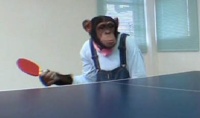 the aforementioned chimp hath been bested by his own shortcomings ..