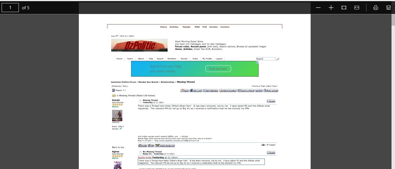 I can print to a PDF and in 2 clicks save a whole thread aussie. The example below has all pages in the thread in it.