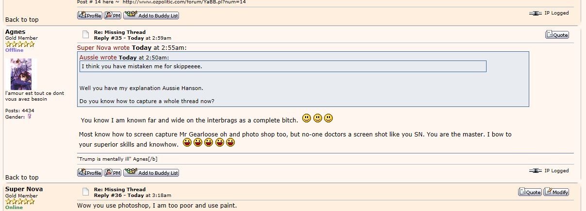 I agree mantra.. maybe the new gmods are over zealous in their brand position and need to impress fd...so they are all over the place... have you ever seen so many threads end up in relationships...??..I think its creepy when whole threads disappear...makes the place untrustworthy... they must want to hide something..... you know what they say about a LITTLE POWER in the wrong hands...lololol...