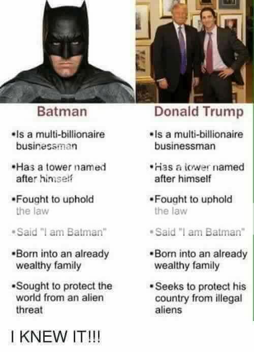 Has anyone ever seen Trump and Batman in the same place at the same time?