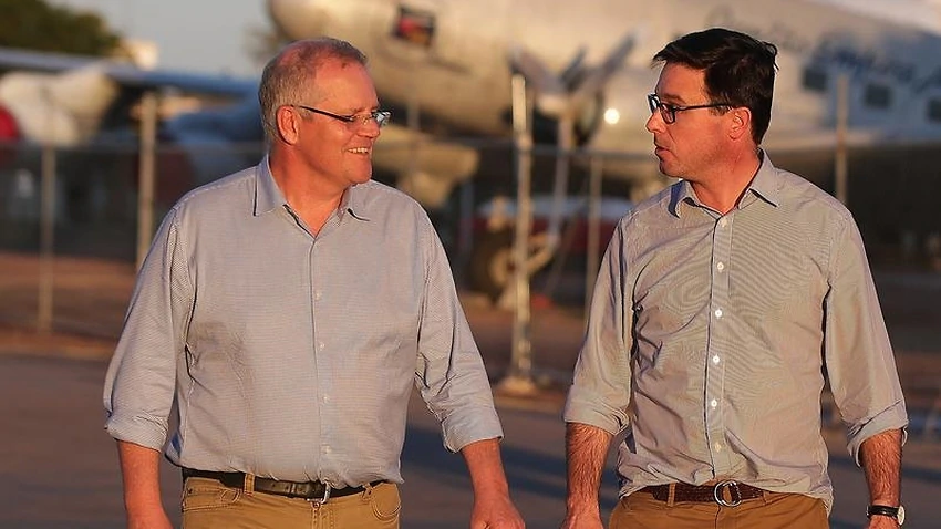 Scott Morrison and Agriculture Minister David Littleproud (right) was leading the push for a new ag visa. Source: AAP