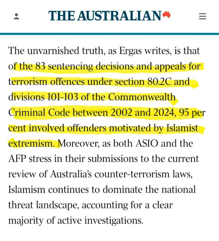 https://www.theaustralian.com.au/commentary/australia-is-not-learning-from-bondi...It's not the far right (a.k.a. the 50 black shorts). It is Islam and it's adherents, promoters, agitators, apologists and jihadis. By the million.