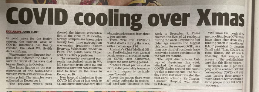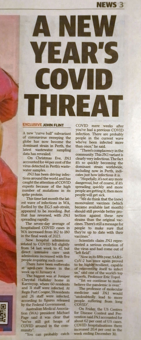 Western Australia: 12 West Aussies died from COVID in the first week of 2024, WA Health data reveals. By John Flint.