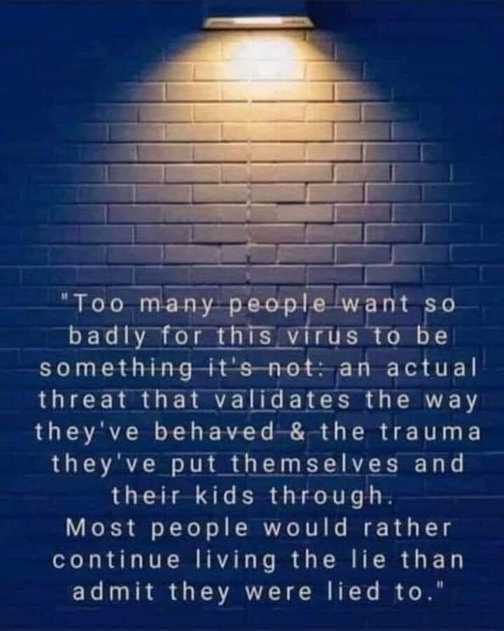 Surely, you are not just another mean-spirited gullible misanthrope. A person who enjoys watching the suffering of others. I would hate to imagine, just how far this government would go, if there really was a more lethal epidemic? Instead of a virus no more lethal than the measles? And our idea of a cure, has done more damage to ourselves, than this virus ever could.