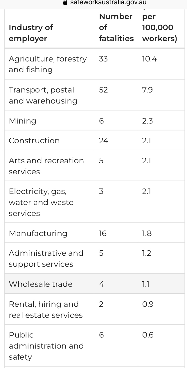 I am referring to coppers.  The gushing teary rush to make/declare these coppers heroes and courageous and doing a dangerous job they might not return home from (while true) is emotive smoke/mirrors hyperbole, not reflected/substantiated in industry comparisons, and the dramatic sobbing wankers are taking full advantage of it.  Sure, the recent incident involved copper death....fair enough....but fuq off with the "courageous/hero" absolute horseshit.