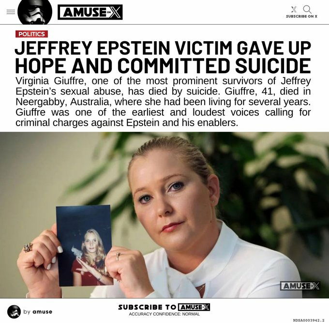 https://www.bbc.com/news/articles/cql67qk0dd3oVirginia Giuffre, Prince Andrew and Jeffrey Epstein accuser, dies