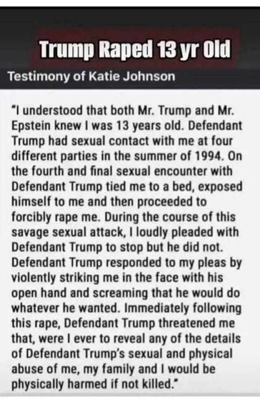 You expect us to believe that an adjudicated rapist who was best friends with America's most notorious child sex offender for two decades, who bragged about watching children get undressed backstage at beauty contests, who groomed a ten-year-old girl in a shopping mall, who said on multiple occasions that he'd like to have sex with his own daughter and who has just moved a convicted child sex trafficker to a minimum security prison before he gives her a pardon ... raped a child?