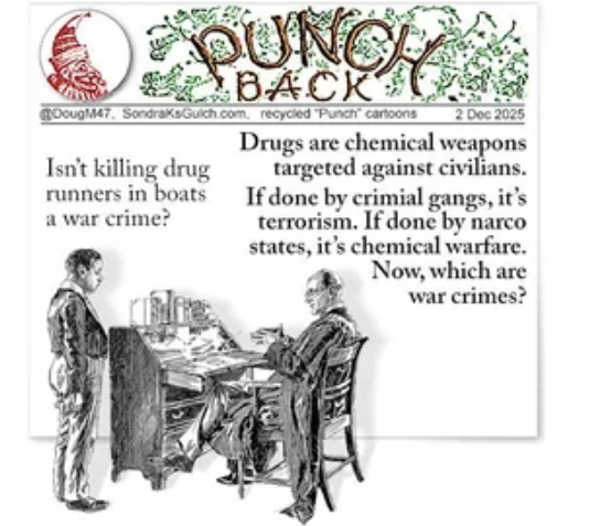 He pardoned himself and Donald signed the Executive Order, the UN is fake and run by witch hunters. The next Venezualan motor-boat gets a torpedo.