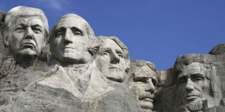 An introductory plaque tells passersby that the exhibit was “conceived, built, and dedicated by President Donald J. Trump as a tribute to past presidents, good, bad, and somewhere in the middle”.